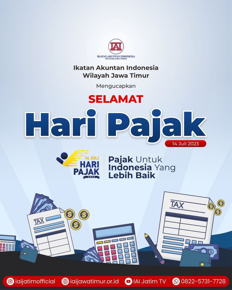 Ikatan Akuntan Indonesia Wilayah Jawa Timur mengucapkan Selamat Hari Pajak 2023.